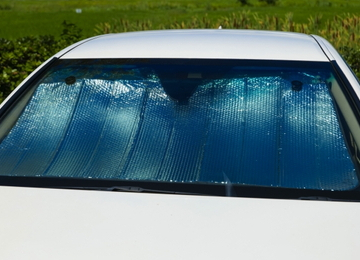 窓ガラスに貼り付けて、太陽の光を直接受けないようにするアイテムです。アルミ製のものは太陽光を反射し、車内温度の上昇を抑制してくれます。