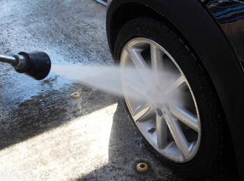 万が一すすぎ残しがあるとタイヤの寿命を縮めかねません。水をかける時には、高圧洗浄機を使うと水圧だけでかなりきれいにタイヤの汚れを落とすことができますよ!